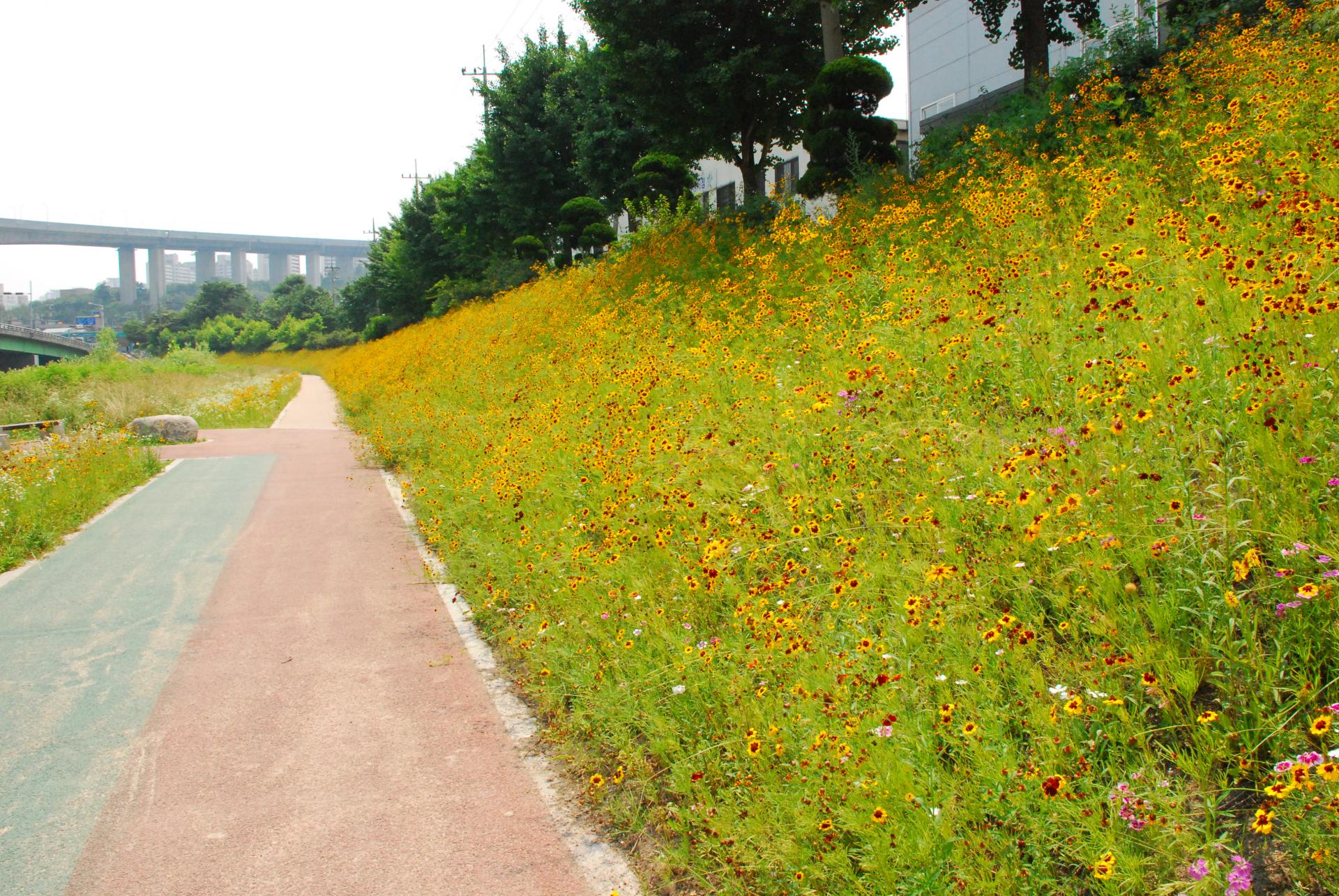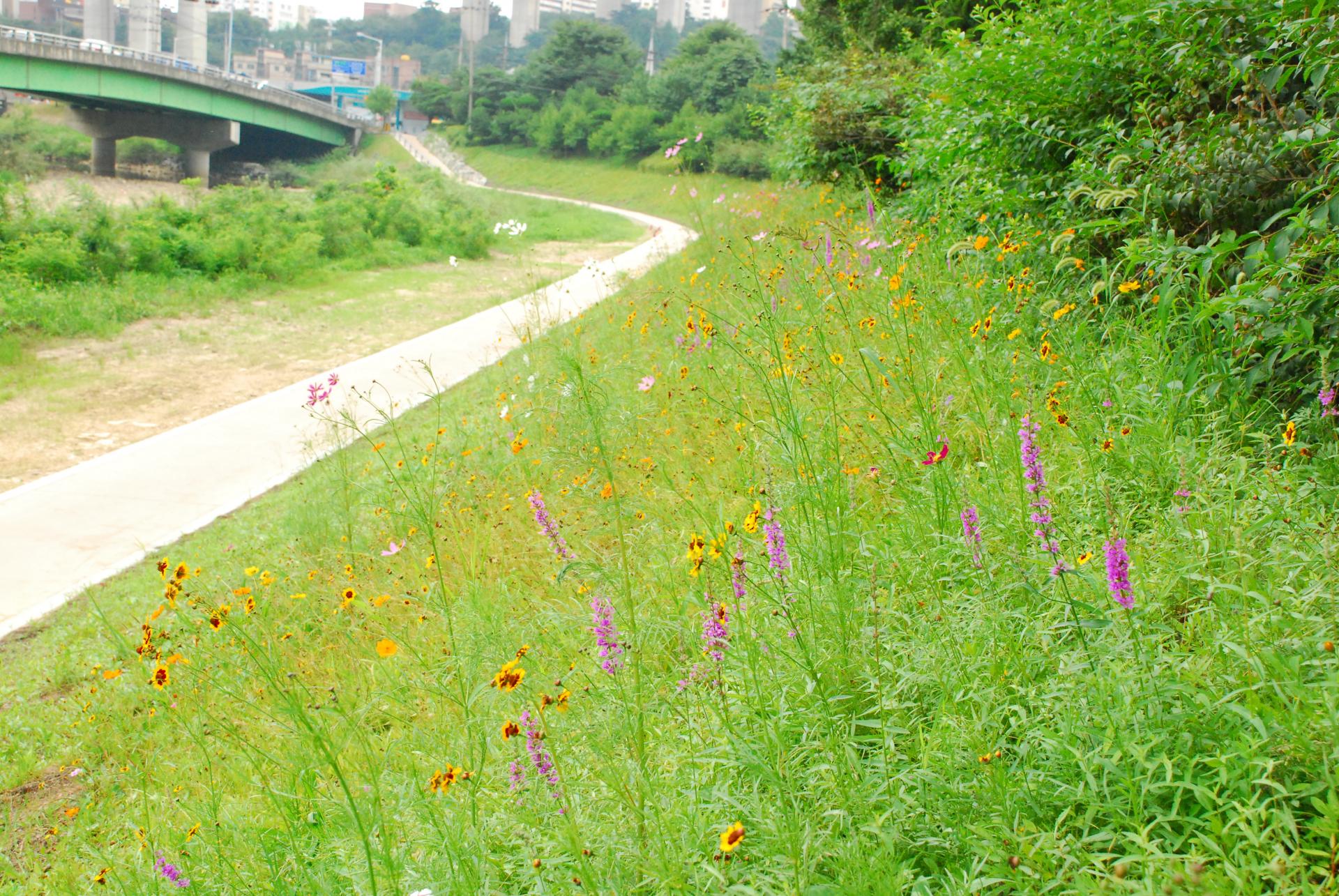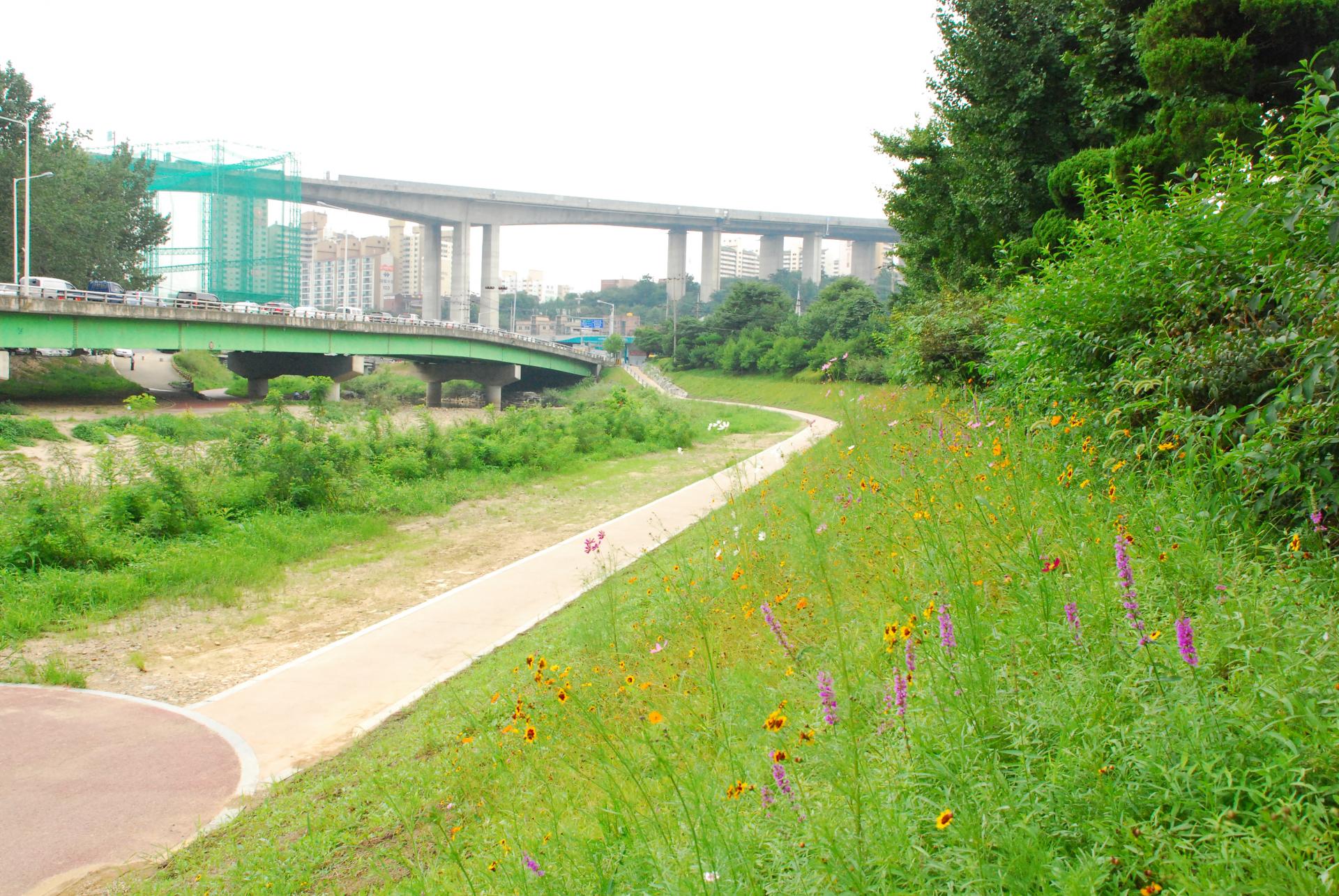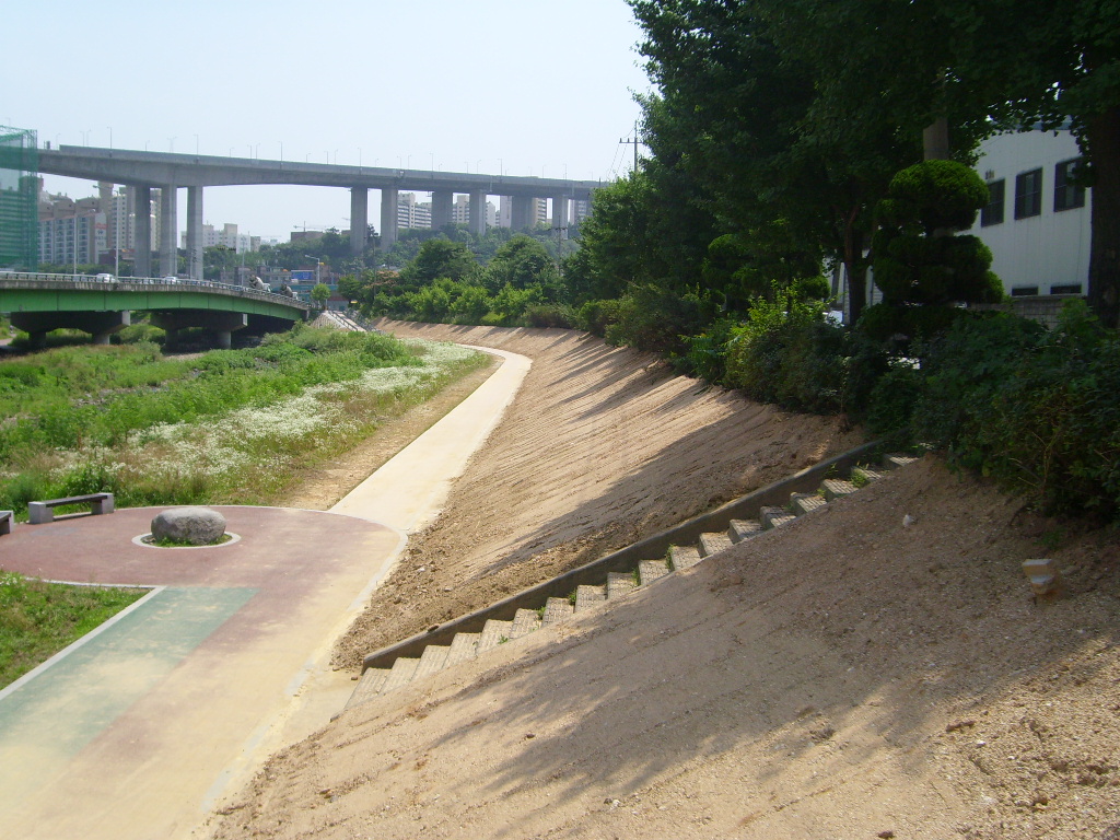 기존 콘크리트 블럭 위 복토 후 녹화