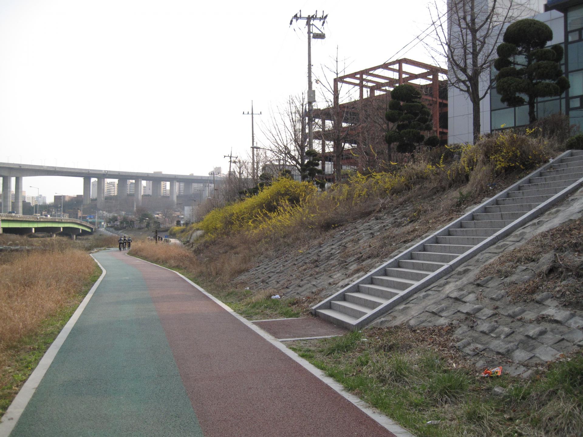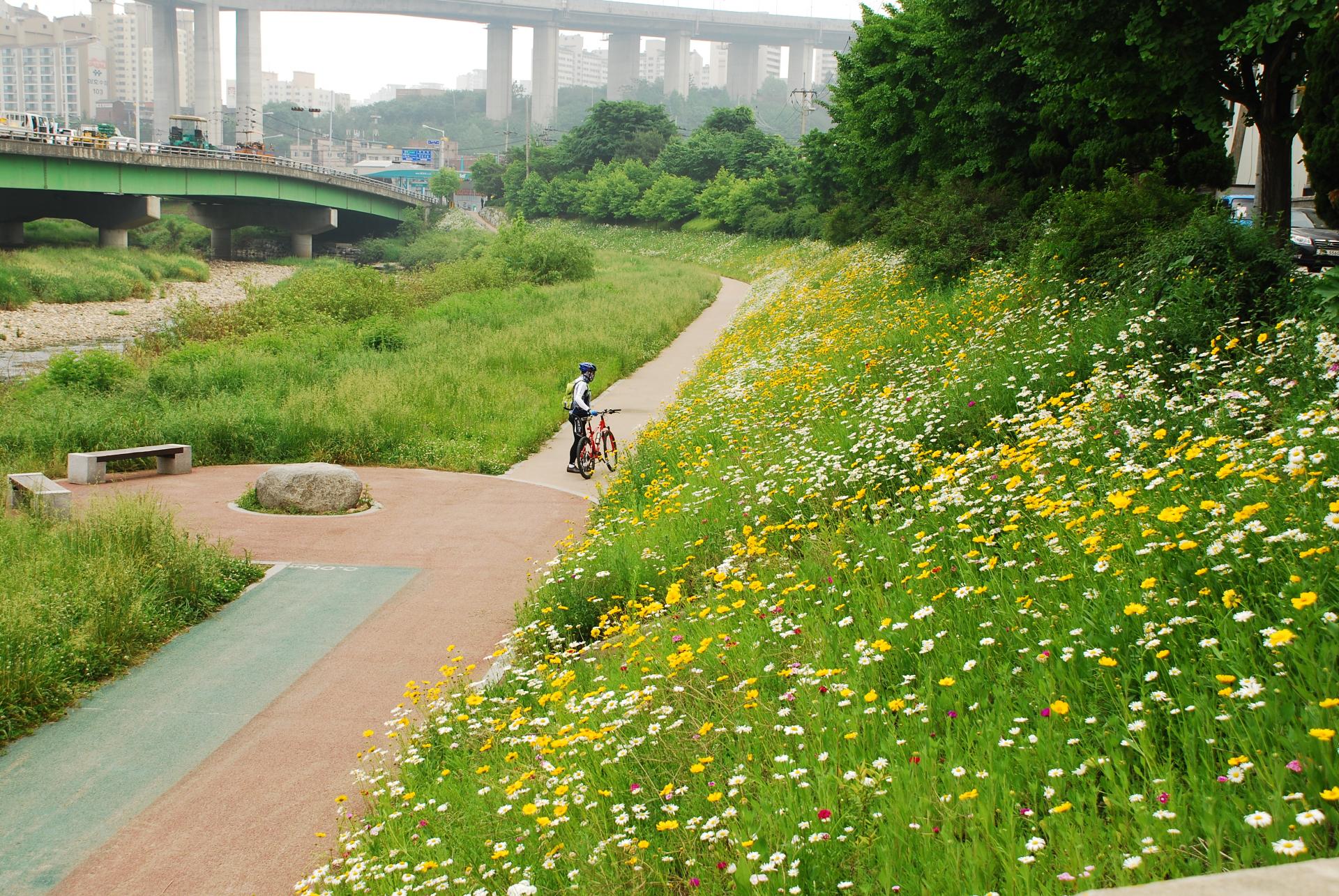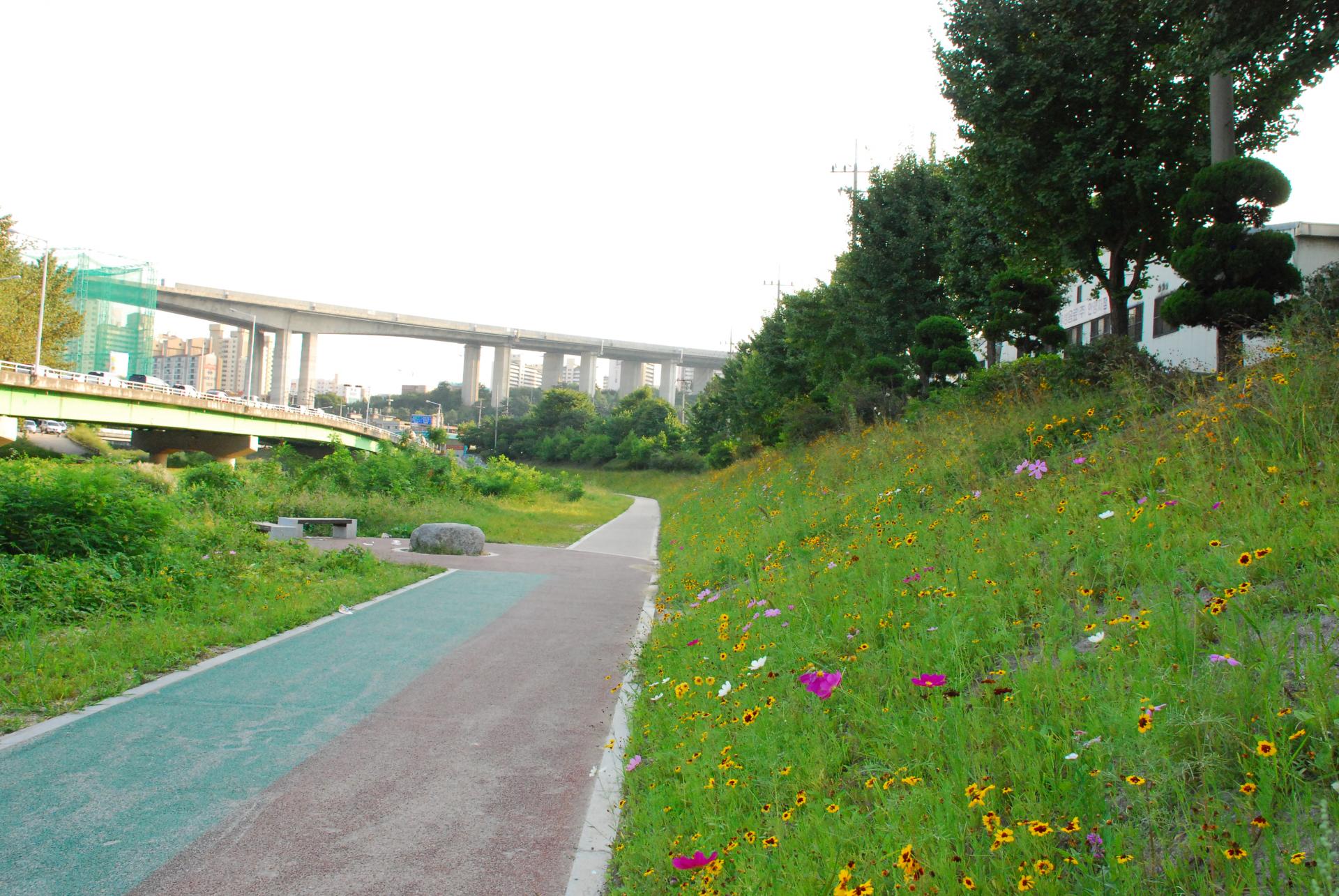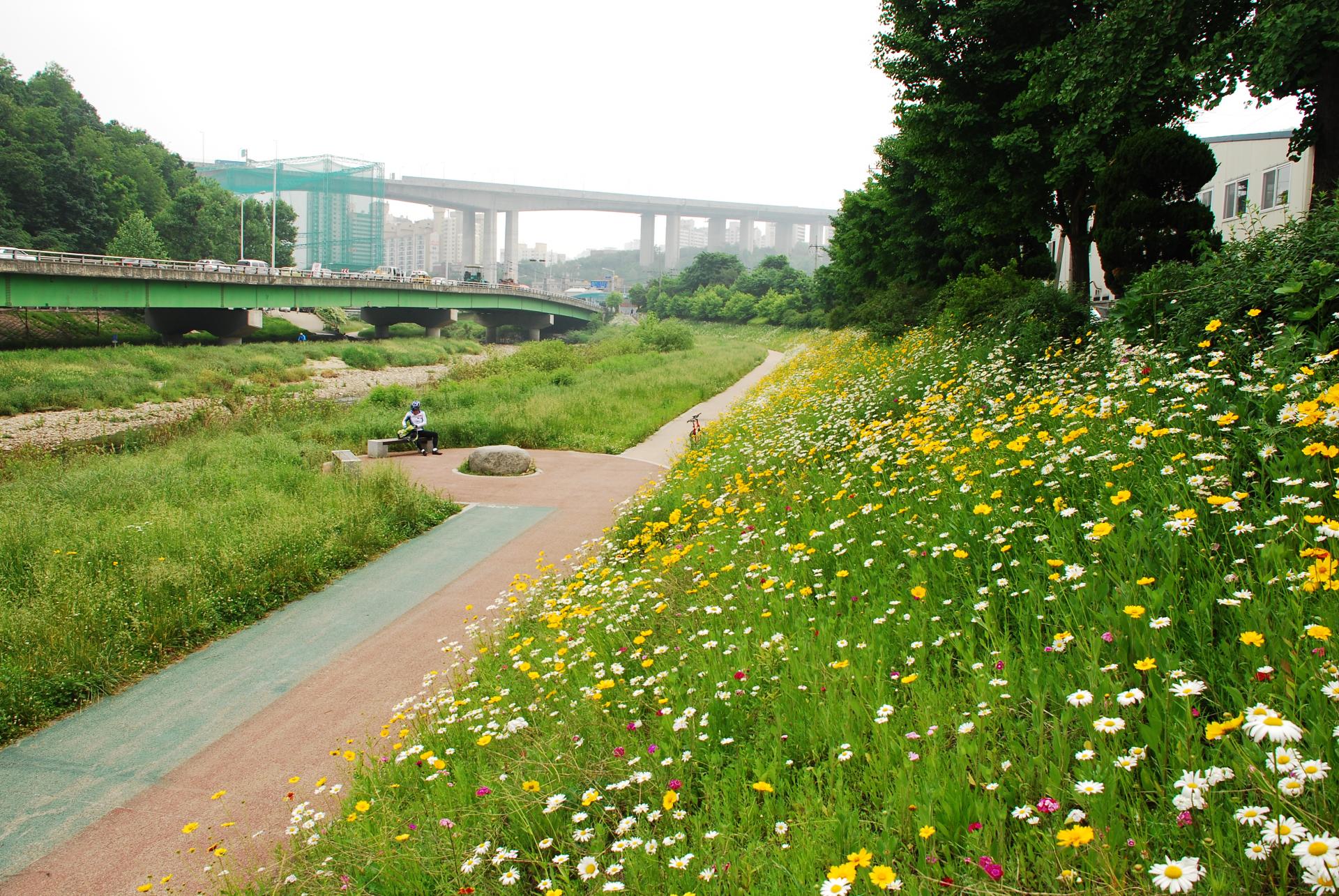 기존 콘크리트 블럭 위 복토 후 녹화