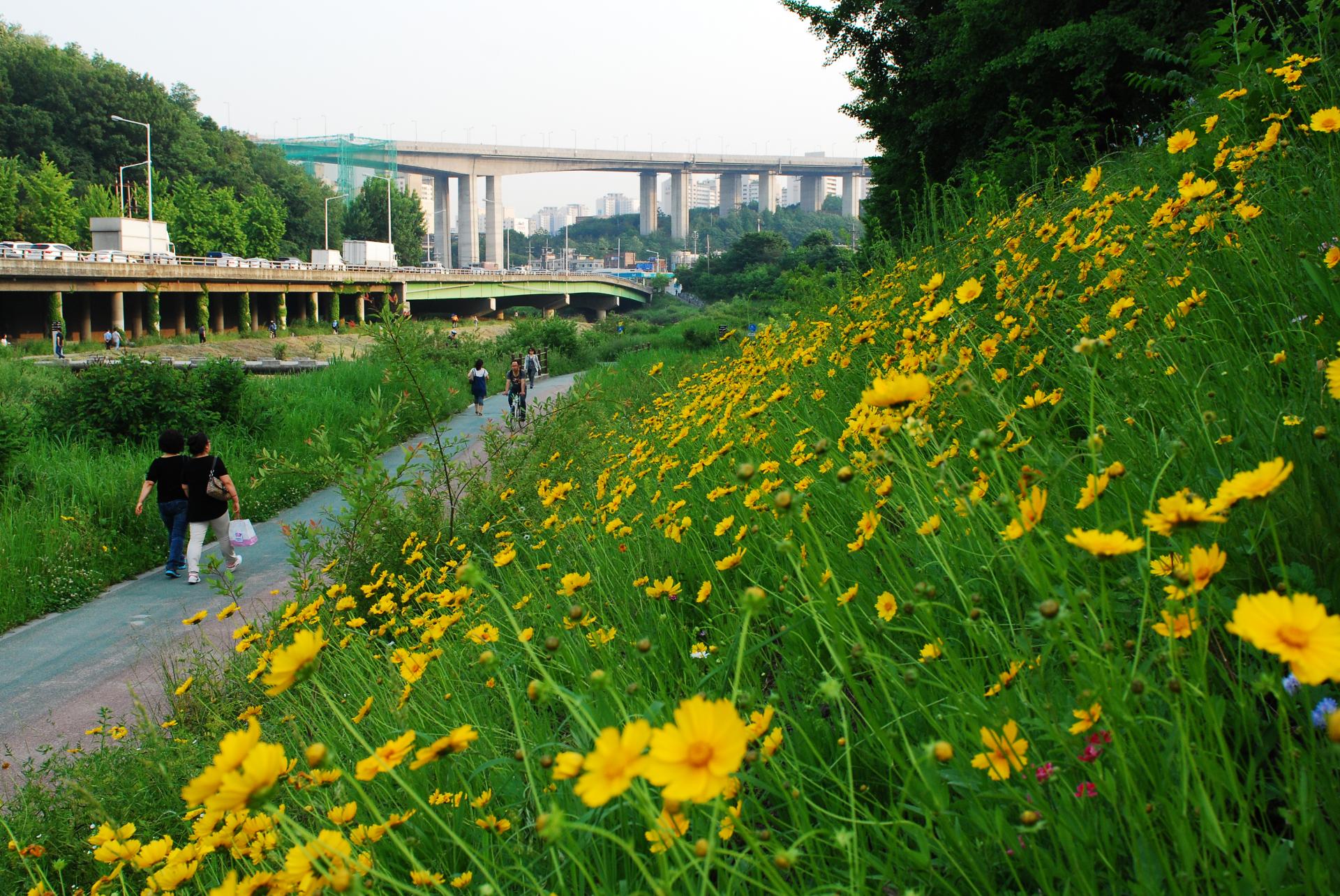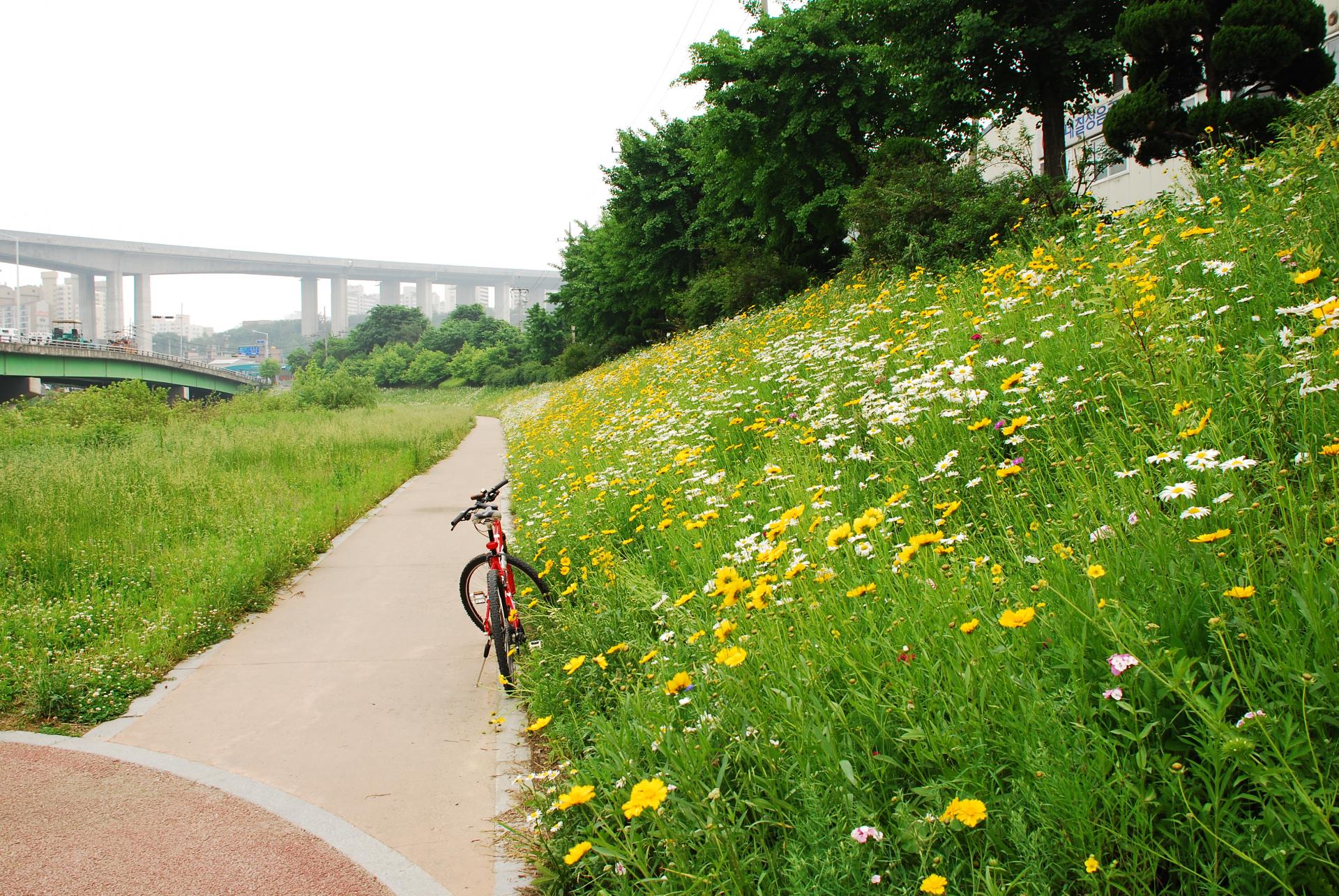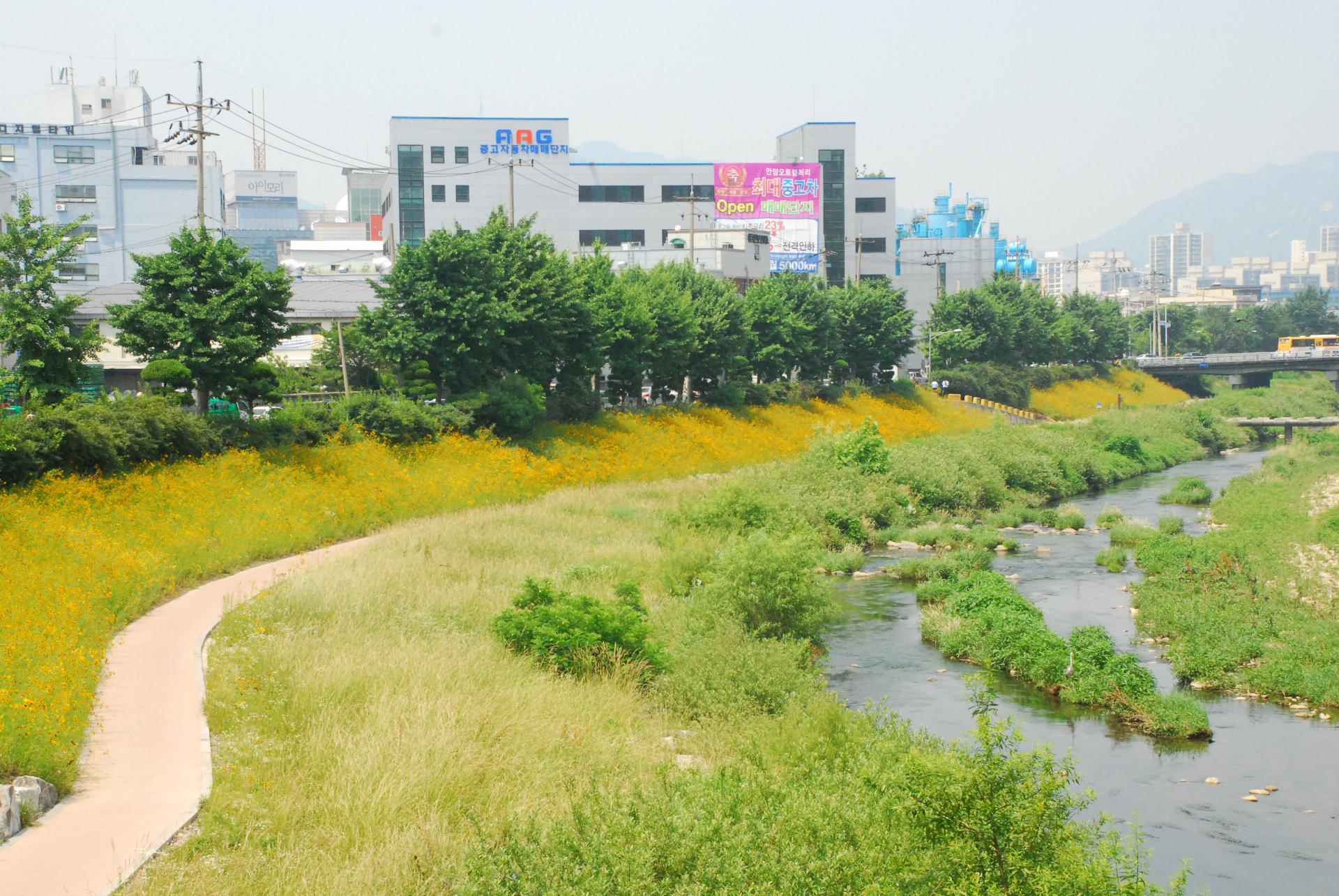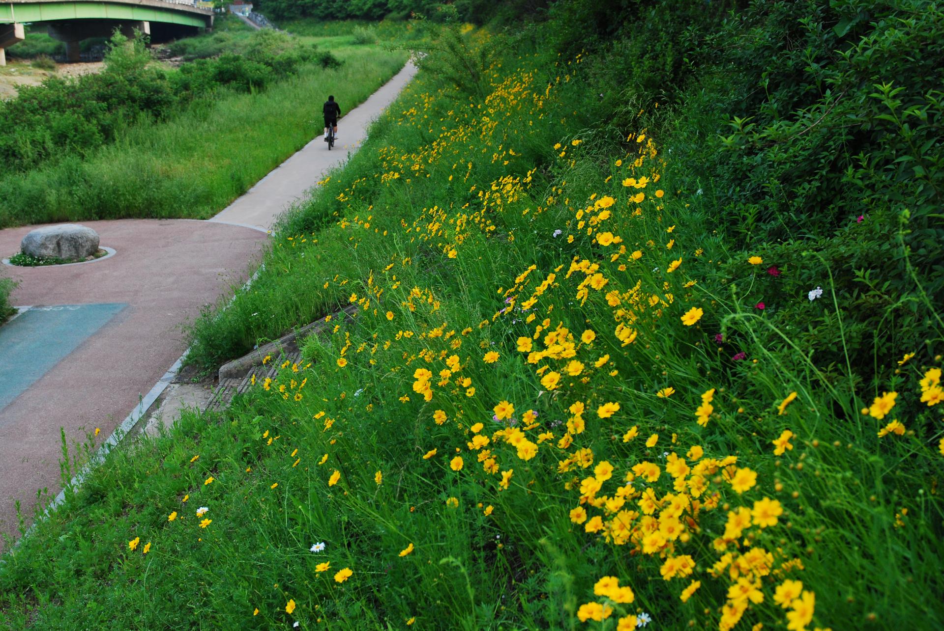 기존 콘크리트 블럭 위 복토 후 녹화